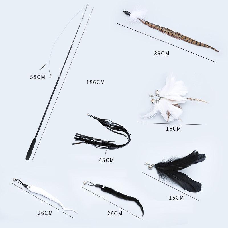Introducing the Telescopic rod funny cat 6-piece set! This lightweight set is designed to provide endless entertainment for your feline friend. Here are some key features: